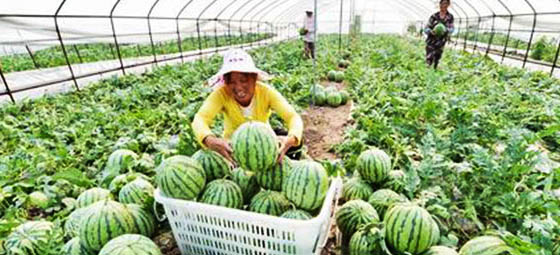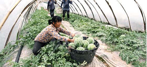 中牟地勢(shì)平坦,土地肥沃,光照充足,雨熱同期,適宜西瓜生長(zhǎng),歷史上,以其個(gè)頭大、形狀好、顏色正、味道美等鮮明特點(diǎn),享有"籽如寶石瓤如蜜,中牟西瓜甜到皮"、"涼爭(zhēng)冰雪甜爭(zhēng)蜜,香拂笑語(yǔ)牙水生"的美譽(yù)。中牟縣西瓜種植戶王先生在2017年一次性訂購(gòu)銀豐公司西瓜專用膜1.5噸,搭建大棚18座,經(jīng)過(guò)一個(gè)冬天的考驗(yàn),華豐牌西瓜專用膜表現(xiàn)優(yōu)異,各項(xiàng)性能保持穩(wěn)定,為客戶西瓜的豐收立下了汗馬功勞。